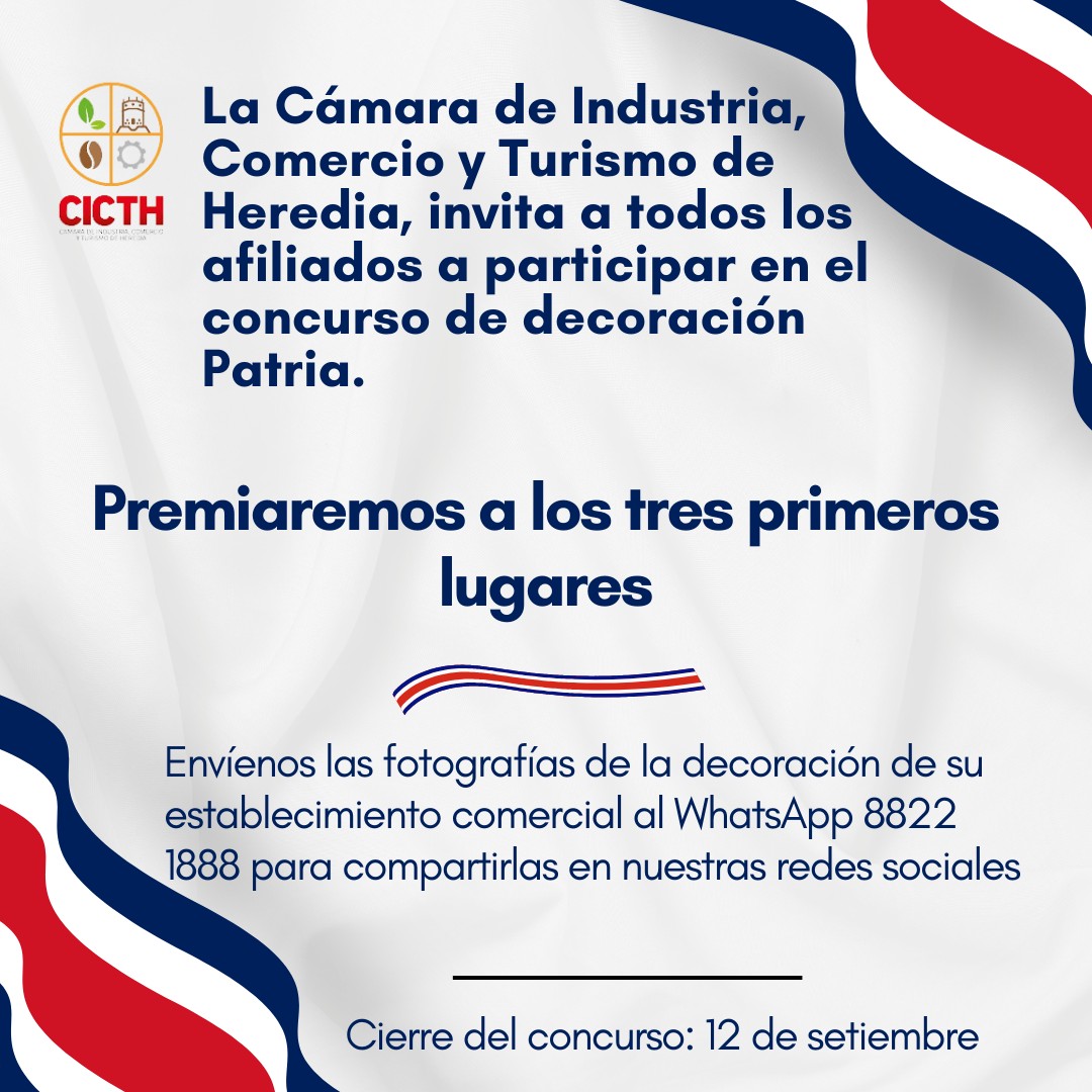 La Cámara de Comercio, Industria y Turismo de Heredia invita a todos los negocios a vestir sus fachadas con los colores de la Patria y compartir sus fotografías.